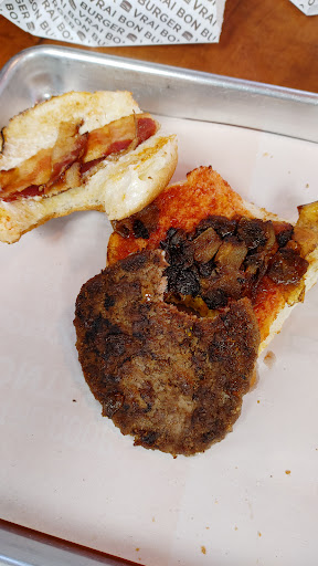 Good. Burgers are better than McDonalds...better quality in my opinion. Taste more like a fresh homemade BBQ burger. Got the Teen burger, husband got the guacamole Uncle burger and my friend got the Spicy Chicken... We each had a bite of each other's - delicious! I liked the avocado in the burger but personally I wouldn't want to eat a whole burger with it... I liked the spicy chicken burger but it was just a bit too spicy for me ( I have a low spice tolerance though). I loved the thick glass ice-cold mugs that the drinks were served in. Frosty! So cool! Loved these! Makes for a fun experience. They come in a variety of sizes so even kids with a small drink can enjoy âșïž. Cups are also available for sale to take home. Neat momento. Parking is good. Located right beside a home Depot store and a great place to stop for lunch. Loved how the fries were served in clean, shiny metal baskets - nice presentation for a fast food joint! We also used the complementary Cajun spice that they have available in a shaker to dress our fries up with - yummy! Highly recommend! The creamy smokey chipotle dip for the sweet potato fries is spot-on perfect. Have had similar dips that didn't have the right chipotle taste... This dip was excellent however. Noticed the Go Green recycling initiatives. Great to see! Clean. Nice sitting tables inside. Friendly staff. Modern. Well maintained. Clean washrooms. Clean serving trays for dine-in. There's a drive through that's pretty fast (not as fast as McDees but fast enough). Will definitely go back. My personal favorite: the Teen burger combo + sweet potato fries and small...