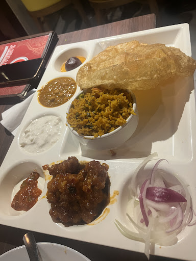 Read moreGoogle really needs to give reviewers the option to select negative stars. It leads to restaurants like this getting way more credit than they deserve. This restaurant is the perfect example of why you shouldn’t follow the crowd. We made the terrible mistake of listening to all the positive reviews here. For starters, the roster of waiters and servers were extremely confused, having absolutely no idea what was going on with their customers, in fact, there was only one waiter who even seemed to care about us. All the other waiters didn’t even bother to acknowledge us when they came to our table, and left just as fast as they came, without even acknowledging what we said. It felt like the waiters were playing hockey with our dishes and cutlery, haphazardly serving them onto our table. In particular, one of the waiters offered to replace our soups with drinks (after we informed her of how absolutely awful the soups were). Naturally, we didn’t find the waiter within 20 feet of our table after she made the offer. Now, for the food. Each item was bad in its own way. You can confidently recommend any of these foods to someone if they annoy you a lot, especially the chettinad masalas that they serve. It is a guaranteed way to alienate yourself from anyone. Firstly the soups (tomato and sweet corn) were something that I would only feed my worst enemy. The tomato soup was just aqueous ketchup, and the sweet corn soup had the consistency of barf dissolved in water. The dosas were obviously not fresh, and it was very clear that the dosas were prepared well before the toppings. The mushroom in the mushroom biryani was extremely soggy and the rice might be older than my car. The only item that was even semi-decent on the menu was the Gopi Manchurian, and even that wasn’t very good. In conclusion, I would never go to this restaurant again even if I got paid...