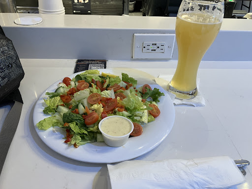 Most of the bar chairs are bolted down, which is, at minimum, very inconvenient. I couldn't sit down without touching the person next to me -- some muscled guy watching hockey -- and that I'd really rather not. My stuff went to the floor in front of me, as there is no other option AND not even the option of hanging anything on your stool, as there is no back on it. Since I wanted to use the charging station, I had to... Crawl under the table to pick stuff. You know. Uncomfortably close to other people... And not even to their shoulders.