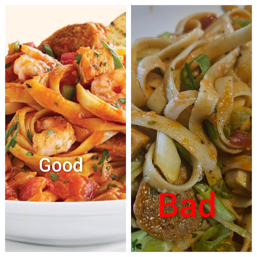 When it came out, I was very disappointed as it did not look as pictured at all. It looked like wet noodles with undercooked meat slept around it. The presentation did not make the food look appetizing at all. When I tried it, the sausage was literally cold as if it had just come out of the fridge add flavor was completely absent. I can't even say that it was salted.