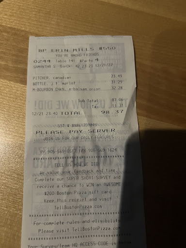 Prepare to embark on a culinary adventure like no other at Boston Pizza in Mississauga! Recently, I found myself stepping into a world of tantalizing tastes and impeccable service that left me spellbound. Buckle up, because I'm about to take you on a journey through an extraordinary dining experience!