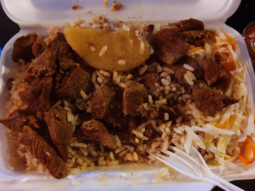 I personally recommend any of the curry with a roti. The Fried Rice is also really good. If you have never had one before, try a Carib or red stripe beer. Also ask about the "lunch special".