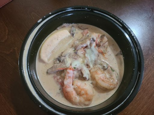 Once I got there to pick up my order, I waited and made eye contact with the staff there and was not acknowledged. In steps a white woman, and immediately she's acknowledged with "Hi, have you been helped yet?" The same lady that greeted her looked at me and said nothing. I decided to wait patiently as I could see that they were very busy. Then , a young girl approaches me asking for my name and hands me the debit machine to pay and walks away. I picked up my bag of food and left. Now, once I get home, I realize that the orders of shrimp saganaki macaroni BOTH somehow are MISSING the pasta/macaroni??? So I paid about $30 for a few pieces of shrimp?