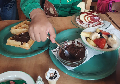 My family of 5 was celebrating a birthday, and everything was going very well until we had paid for our food and it was time to leave. My autistic 10-yr old son had ordered a delicious chocolate chip pancake today, but as we were packing up to go, he fixated on wanting to eat a yummy waffle with Nutella (which he's had during previous visits). Unfortunately, he's been having a rough few weeks with sleep, and emotional regulation gets very tough... My attempts to convince him to order the waffles at our next visit only caused him to break down in tears and escalate further. As I was trying to troubleshoot how to usher my son out of the restaurant as quickly as possible, Loni (who I assume is the manager) came to our rescue!