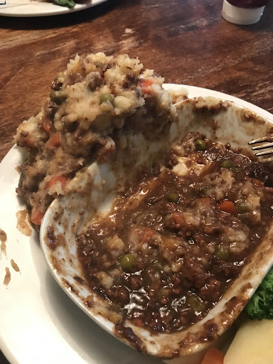 I ordered the Shepherd’s Pie, which is generally a safe bet. The dish was easily 85% mashed potatoes that went straight to the bottom of almost the entire dish. The rest of the ingredients were added in a ring around the outer edge like a gravy. I’m not over exaggerating by stating I don’t think there was a full tablespoon of ground beef included, more like a gravy with small bits of vegetables.