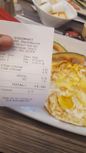 Read moreI'm giving this place a negativereview even though I've been going to this location for awhile now not because of friends who wanted to go here. Every time I've gone this placethey've brutally ruined my order and made up excuses to why they never put avocado in the food which requires Avocado to be in it? Like why are you being so cheap and why are you making up excuses as to the cook always forgetting the Avocado or the steak not being done right same as the home fries, the potatoes were a bit on the raw side, she said they boil the potatoes for an hour? Really an hour? LOL? or there wasn't enough cheese in the stock room or that the tomatoes had been recalled? Like are you running a business or are you trying run customers away? I don't get it? 4 times? That's too much! When I spoke to the manager she gave me such attitude so I refused to pay? You disrespect my food you don't deserve my money! She then told me to call head office and that she didn't care about my concerns and that her chef in training was more important? Well I hope someone sues her! I'll never go back to this dump in the ground. I bet she'll remove my remarks and that's ok when head office finds out she'll wish otherwise. She had the nerve to tell me that other customers love her place? When you don't know how good food is suppose to taste what can you expect from owners like her? IF YOU GO HERE? EAT AT YOUR OWN RISK! I'll never eat at another Eggsmart been to 2 locations and both were horrible! Their competitors are way better and respectful. OH YEAH THEIR MENU HASN'T CHANGED THAT'S ANOTHER LIE! THEY WORDED THEIR FOOD...