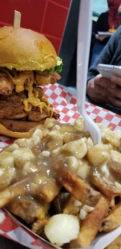 Service : The girls who work here were sweet but a lot of reserved Muslim crowds come here and you could literally see one servers underwear through her see through skin-tight tights. (think there should be some sort of dress code, did not need to see that the whole time we ate and a lot of husband's eyes were gonna pop out of thier head lol). My poutine taste absolutely disgusting, and I asked if I could change my poutine to sweet potato fries (which are cheaper btw) and, I had paid in the mid 20s for my meal and barely touched the poutine...they said that since its already made that it could not be swapped. This is ridiculous, have never had a restaurant say that this was not an option or offer a refund. Never going back again because that's pretty cheap to pull as an owner, this place makes money so shouldn't have been an issue.My friends also did not like the food at all they said they would never go back. We got assorted things including chicken and beef burgers. The wait for a table is long but for the food it's pretty quick. It would be helpful to have a number system or mic in place so you can hear the servers call out numbers as customers couldn't and ignored them (my friend told them which table had which number)... I think it's fine if customers walk up to the cash instead to get thier orders when numbers are called, less confusion and need for stressed servers who are trying to yell or get everyone's attention every few mins.