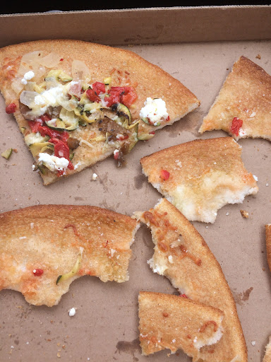 While eating them, the majority of the toppings just fell on my lap or into my mouth while taking a bite. The result was that I had huge hunks of plain crust left. Iâve included some photos so you can see what my eating experience was like.