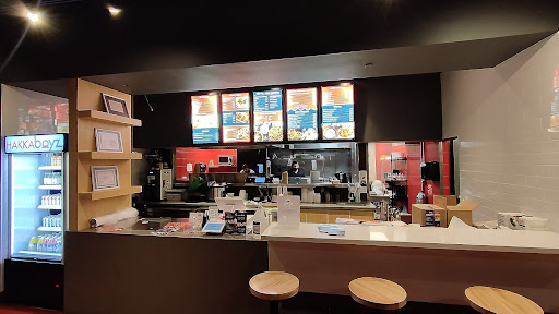 HAKKA boyz is a Southern Indian cuisine restaurant boasting a bright and modern design. Upon entering, patrons order and pay at the counter, with options for takeout or dining in.