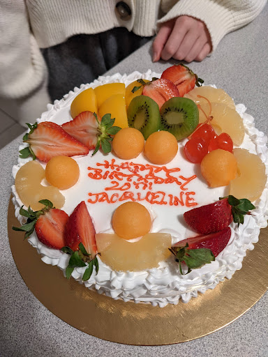 Friendly service from this small bakery owned and operated by a husband and wife. They made me a 3 layered white cake with fruit and whipped topping while I waited, which took about 15 minutes. A 9 inch round cake cost $35, which is cheaper than at T&T (T&T charges $34 for an 8 inch round). The cake had a fine, moist crumb, and the sweetness was just right--not too sweet, just sweet enough. I deducted one star from the rating because I felt like they could've used more whipped topping, and I'm pretty sure that the fruit used in the layer filling was from a can. Also, the writing on the cake was not very professionally done. But it was still all DELICIOUS, and I'm happy that I found this bakery. Other items available included a triangular apple strawberry pie ($1.99) which I was tempted to try but managed to resist. Egg tarts were $1.29 (or 6 for $6.60). I also saw the usual assortment of hot dog rolls, BBQ pork buns, and some traditional black bean or red bean pastries. Cash payment only. The location of this bakery is tricky to find. It is near an ethnic supermarket at the back of the mall, down a very short hallway, . The hallway looks like it leads only to an exit, but this bakery is tucked on one side of the hallway. Worth a visit! Support this very small business! Highly...