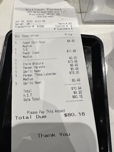 Ā Ā Ā Read moreOne of the best and most authentic North Indian vegetarian places. We had the following items chat papdi, garlic naan, panner paratha, Chole batura and panner labadar!! Every single item was so flavorful and tasty. The service was outstanding and every item was delivered in quick time even though the restaurant was so busy and full. I couldnāt take pics of other items since we were very hungry š. Coming to each individual item: Chat papdi - though called as medium spicy on the bill it was slightly on the spicy side but the ingredients were so fresh and tasty. Garlic naan was so soft and had a very good amount of minced garlic. Panner paratha was so soft, was served with yogurt, aachar and pickled onions. It was so soft and filling was wonderful. Panner labadar was so creamy with loads of panner though the serving bowl looked small the portion is really good for 2 to 3 naans. Chole batura was served with two huge batura and Chole was well cooked and tasty. This place was on my list to go for quite sometime and will surely comeback to try their other items. I am eagerly waiting for them to open the Erin mills location. Kudos to the chefs, serving team and management for running an authentic North Indian veggie restaurant. Although sides were slightly on the higher price point I wouldnāt bother about it just because of the tasty food thatās being served and service they offer!! Forgot to mention one more item we tried which was Sweet corn soup, after a long search around all of GTA I could say this has been the best vegetarian version of a sweet corn soup which...