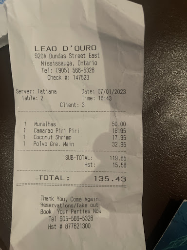 Read moreNotwithstanding previous unpleasant experience with food (bacalhau a leao d’ouro) I specifically discussed with the waiter and said ‘ if the cod cut is the tail let me know and I’ll get something else as I don’t want another plate of fish bones. He guaranteed speaking with the chef and will get a center cut. Surprise (or many not..,) another disgusting and embarrassing piece of cod (tail) full of bones and hardly any fish. When called to verify the waiter went to the kitchen and all you could see was arms gesturing in a less than happy manner. Which, leads me to conclude, not only are you incompetent in the quality of food you serve still want to be right about it. Unbelievable. The waiter came back apologetically and indicated that that’s all the cod they have…so, pick something else if you want. At his suggestion I got grouper (no way…dense and dry fish; anyway, I played along and got on with my life. Btw…at our table (of 14 guests) we also had many other complaints about the quality and temperature of other dishes. Including appetizers such as coconut shrimp (cold and soggy…previously cooked quite evidently); sardines were just mush and nasty; piri piri shrimp…cold, bitter and super small…again, no pride on quality or taste. I could go on…but you get the point. After being away from this place for several years due to service, I recently made three attempts again to support our entrepreneurs…but nothing changes. Therefore, I will never go back or recommend to any of my family and friends as I’ve done in the past. To everyone else, you can try and hopefully have a better experience; albeit, perhaps better off not running the risk of disappointment and go elsewhere. Entertainment dollars are hard earned and should be spent to give pleasure, satisfaction and happiness. Not eat garbage and feel frustrated by the complacency demonstrated by...