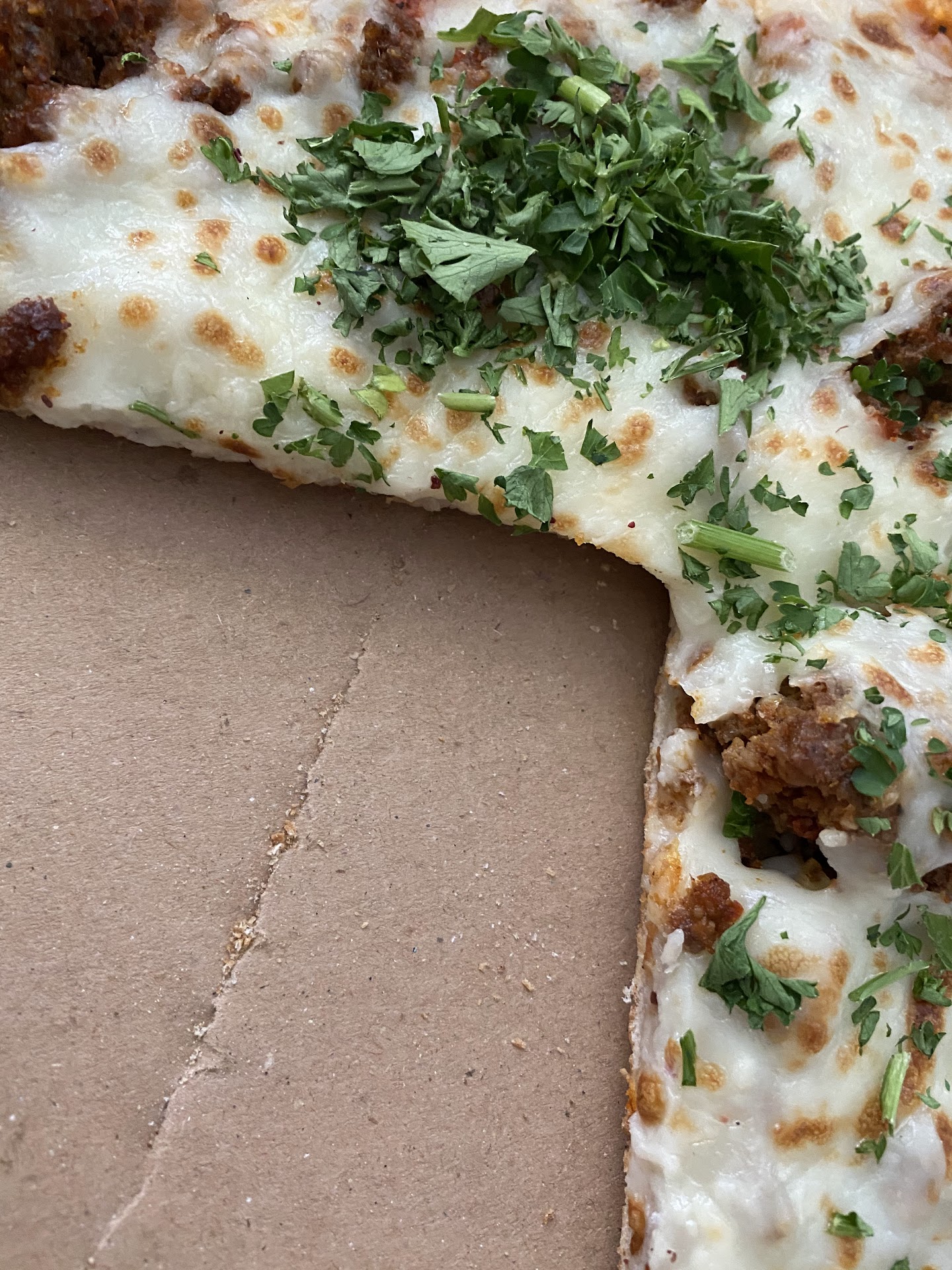 The mana'eesh are about 9" ..the size of a small personal pizza. And it is filling. The dough / crust was delightful. It is rather perfect. It is chewy and crunchy ( at the ends ). The texture is perfect for me. It reminds of a NYC and NJ pizza slice.