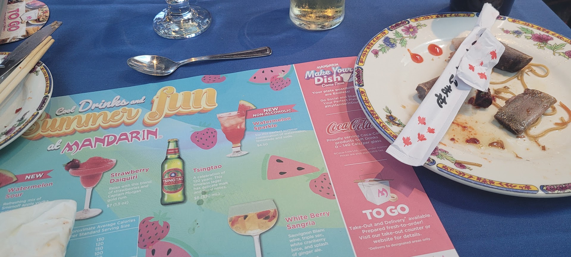 Read moreAlways a treat at the Mandarin. Decided to do a late weekday lunch with my wife and really enjoyed the quieter atmosphere. Pretty quiet on Thursday at 130pm but lots of time to enjoy each of our favorites before buffet shutdown at 3pm. No line ups at food stations. Always enjoy the Hot n Sour soup. Sushi including sashimi was ample to choose from. Prime rib, a little well-done, but still good (with all the sides, onion rings, fries, corn, roast potatoes). Grill meats, including grilled shrimp, as much as you wanted. Noodles, fried rice, chili green beans, stir fry, deep fried chicken wings, torpedo shrimp, honey garlic ribs, BBQ ribs, spring and egg rolls, and too many Asian specialties to mention. Cold salad, seafood salads, potato salad, peel n eat shrimp, fresh mussels are all my favorites. I'm not a dessert person, but the Gelato and ice cream choices were ample for my satisfaction. Very reasonable beer prices and great service by our waiter Chris was only topped by the fresh cotton candy machine for my wife on the way out. Mandarin is always a treat and today was just another satisfying experience. You'll always find more than enough to satisfy your tastebuds (and eat more than you expected. 😆. BTW, that's my plate, notice that there's nothing...