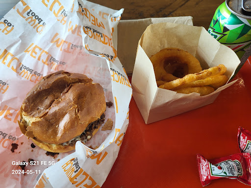 Decided to give this place a try, only to be disappointed. I walked in and stood looking at the menu. I was standing there for a solid 3 minutes before the guy behind the counter asked me, "Is this your first time here?" They explained the menu to me, and I chose the Philly Cheese Steak on a brioche bun with onion rings and a soda. The brioche bun had to be at least a day old because of the way it crumbled. There was very little cheese, and I found that extremely ironic since it was supposed to be a cheese steak from a place that prides themselves on melted cheese!!! See the photos. It was very plain, tasteless, and processed. The onion rings were greasy and also very plain, and they left a sick feeling in my stomach. Not a good experience, and the guy behind the counter needs customer service 101, not...