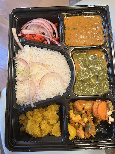 So the food we got was two veg thali pakora and samoza. So the curries looked bad and when we tasted it the chole was very salt unbearable, the sagg tasted old and sour, the Shai panner gray was not thick the Naan was dry but big. The rice was good. The pakora were very salty all of them. The samoza were pretty good except very oily.