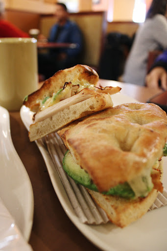 đ„ȘChipotle Chicken Avocado Sandwich đ„Ș This sandwich includes chipotle sauce with chicken and avocado and some cheese. đThe bread on the outside is crispy and the whole sandwich is very filling. This is included in a âyou pick twoâ meal which you can pick any two entrees mix and match. But you also have the option to choose a whole sandwich so I did that. It also includes a side, they have healthy options as a side like apple.đ€