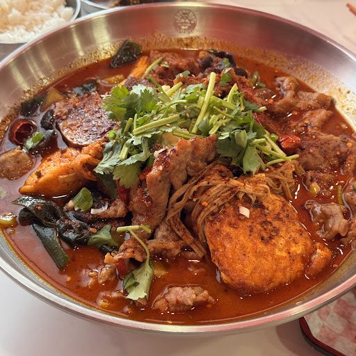 I really enjoyed my dining experience here. First time and will definitely return. From the food, to the friendly service and very clean environment. The reviews I've read were spot on and accurate. If you love Sichuan and spicy food, this is the place to go in Sauga. I'm a big fan of Sichuan spicy broth and you have the option of four different soup base and pick your own ingredients. We went with the traditional spicy numbing soup and going with mild spicy as recommended by the waitress as even with mild, it is spicier than average. I'm glad we went with their recommendation. Mild is perfect spicy level for me, but for most people who can barely take any heat, even mild might be too spicy. If you can't eat spicy food, then I would suggest choosing their other non-spicy soup base. And btw, the broth was flavourful and tasty! In terms of the ingredients to select from, they charge by weight with minimum 400g at $3.29 per 100g. Meat is extra cost. Our bowl came to over 1.2kg to share between two people, and we finished the entire bowl. The weigh was just right for us. We also ordered lamb skewers and spicy chicken wings. The lamb skewers were well seasoned and tender. They also serve complimentary plum juice instead of water. It is a bit too sweet for my taste, and possibly not for everyone. They do have a selection of drinks that you could order at a cost. I would recommend this place to anyone who...