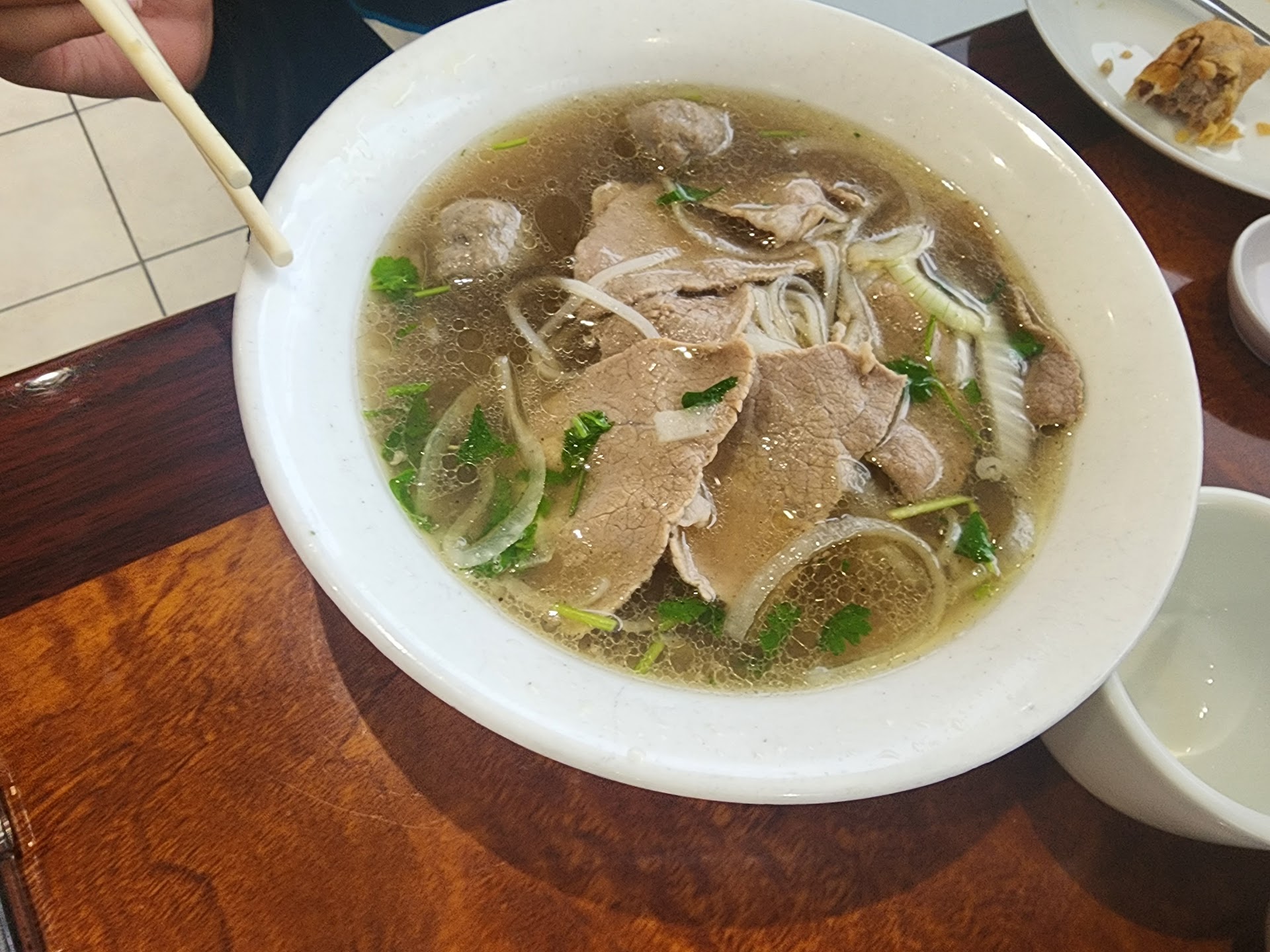 Read moreWent here for some pho with my family. As soon as we walked in we felt very comfortable. It was friday around 7pm and it was not packed so we were able to get seated right away. We did takeout, however. The server who seated us and took our order was very very nice, always smiling and she didnt feel fake or try to rush us. The decor inside was nice but it does need updating, the flourescent lights were really hard for my eyes, but the place was well lit, which I appreciate. The floors need updating as well as they look like they have seen a lot of traffic. The food was amazing, we had the pho tai; classic beef broth soup, it was really good, also had spring rolls, mango salad and got a few rice dishes. Everything was really good. This is now going to be our new pho spot even though it is not super close to our house. We think it's worth the drive for the quality of food...