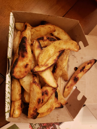 When I finally got my pizzas it was a little after 8pm. From calling in, to walking away with the pizza, took 2 full hours. On the way out I heard the manager tell the cashier to 'deal with Kevin because he didn't want to.' It is sad when the managers hide in the back and let their employees deal with disgruntled customers. I felt bad for the cashier as he was trying to deal with a lot of upset customers all by himself. I was not the only customer last night who waited over an hour for pizza. After finally getting my food home and sat down to eat, I realized they completely burnt my potato wedges.