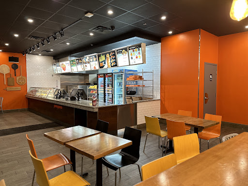 average food as to be expected. subpar service. was told to scan gift card (as opposed to swiping it) and was informed card's not valid. good thing i kept the transaction record from a previous visit at another store and showed the staff it reflected two different account numbers. when scanned, it had the activation bar code instead of the gift card's account information. eventually, after a couple of swipes, it went through. when the orders came, had to ask for napkins (counted four thin ones for an order of a large pizza and a 10-piece box of wings. talk about cost-cutting measures! sure, they had what resembled a condiment section by the edge of the counter that had a couple containers of pepper flakes that were close to empty, two bottles of ketchup of which one was completely empty, a straw holder that had about five pieces in it, and a napkin dispenser that had, you guessed it, NOTHING. all inexcusable because we were the only dine-in customers. most of the walk ins thely had were there to retrieve their packages from amazon as they had a pick-up location inside the store.