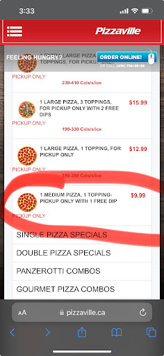 Read moreHorrible service. Ordered med pizza on phone and I was told it comes with a dipping sauce when I went to get pizza the guy gave me pizza with no dipping sauce when I asked him where my sauce is I got attitude back and he said it doesn’t come with dipping sauce. I called customer service and went online and they confirmed that it comes with sauce. No need for this attitude, open your own store that’s not pizzaville if you want to go by your own rules. I also got burned pizza here once so not...