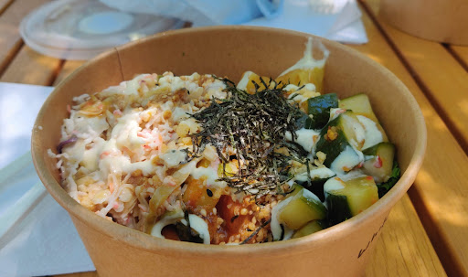 Staff were very helpful and informed us of which Signature Bowls were the most popular as we were looking through their menu. I went with the 'Build Your Own Bowl' ($12.95) option which by the time I got around to eat it was probably not the best choice unless I wanted to add a variety of toppings ($1~1.50 each). Next time I will definitely try out their Signature Bowls instead . There are also various garnishes and sauces you can include in your bowl as well. They accept cash and credit.