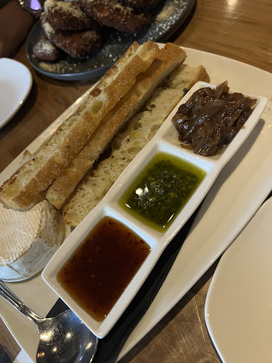 That said, the food itself was excellent. The focaccia with brie trio dip and the panko mozza “bricks” were beautifully done—crispy, melty, and rich with flavour. Easily the highlight of our experience. Though we didn’t eat our mains at the table, we did enjoy them at home. The whiskey burger was especially impressive, with the perfect balance of sweet caramelized onions, cheese, and a juicy patty. The fish and chips didn’t hold up as takeout—too oily by the time we got to it—but we suspect it would’ve been much better fresh.