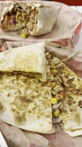 I used to go to another Quesada (long ago). I decided to try this one out. It was Ok, but nothing special. Maybe it was my choice of food. I ordered the small Veggie Burrito. I believe it was suppose to be Roasted Veggie. She hardly put any Pinto Beans, but she did put Black Bean. I probably should have asked her to put more Pinto ( Bean). The other Quesada I used to go to used to put more Pinto ( Bean)...they put both Pinto and Black bean. Anyhow, it just seem like the Bean amount was pretty small. I probably should have ordered the Bean burrito ( instead of Veggie). When it came time to put the Roasted Veggie, it was mainly Green Bell Pepper but it did not look Roasted ( it look more like it was steamed). She put alot of it on my Burrito. The reason I am saying anything is if I knew the Roasted Veggies were not Roasted but just steamed, i would have ask her not to put so much and just put more PInto bean. I guess I should have tried Spicy Chicken. I just wanted to pay 9.69 or 10.29 or something with tax. Anyhow, maybe she did not thing about it. How the Veggies did not have very much flavour. I mean everything was fresh, just not very much taste. This place has potential but I just did not want to pay over 11 dollars for a burrito. I think the ones with meat cost about 12 dollars ( for small i think). I sometimes dont eat too much meat. I used to go to another burrito place (Bar) but I stop going to Bar because once i ordered Chicken and it was super dry and the girl put way too much. They usually portion...and dont give very much meat so I was expecting more beans, but that time at Bar the girl decided to give too much chicken and the chicken was super dry. That is why I stop eating at Bar. The chicken can be good but most of time its dry. That is why i rather get more beans. Anyhow, its Canada and not easy finding great Mexican. Im from westcoast which definitely has mexican stuff. So if you decide to get Veggie, maybe ask for more Bean unless the Veggie looks Roasted. The burrito sauce was Ok. i probably should have asked her for one more sauce ( do they allow more than 2 sauces?) Might have made everything taste a little better instead of bland. The other Quesada I used to go to was very good but I stop going to the other one because the food started to...