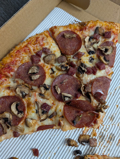 Beyond the perplexing toppings, the crust was rubbery, and while the cheese and sauce were passable, they couldn't salvage the overall experience. This was certainly not what I consider good pizza, and the mystery meat issue was particularly off-putting. See for yourself; can you find the "bacon strips"?