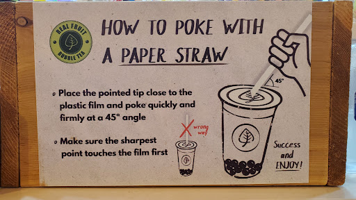 Funny enough, they have a sign that explains how to poke through the plastic lid with paper straws. I guess it was a big...