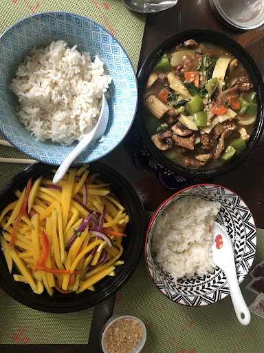 We ordered the following: Hot & Sour Soup Mango Salad Crispy Manchurian Beef Crispy Bangkok Shrimp Beef Chow Mein