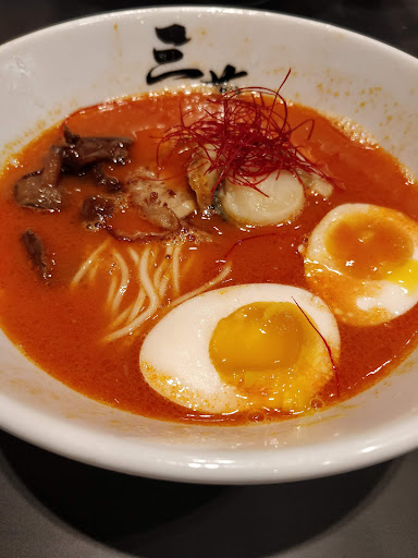 Read moreCame here with my family and my sister. I wouldn’t recommend if you have dietary restrictions because the options are limited to pork. I understand Ramen is typically served in pork broth with pork etc. I didn’t think sansotei would have just pork options with one vegetation option. My sister doesn’t eat pork, so that limited her to just the vegetarian mazeman which wasn’t that great - according to her 2/5 was what she rated it. I’m also trying to cut back on meat options so I had no choice but to get the tomato ramen and gave my daughter the meat in a separate bowl because we couldn’t order the simple ramen or the gyudon for her since they they were out of rice. My boyfriend had the black garlic tonkotsu which he rated 3/5, he’s ordered black garlic tonkotsu before at Kamen Ramen but this dish was over powering with the garlic. He also noticed the pork meat was very thinly sliced - almost similar to sliced ham you get at a deli shop. We also ordered Gyoza but they came back saying they were also out of that. Almost half the menu wasn’t available because they were out of rice and gyoza. Also sold out of the salad which I think is permanently removed from the menu but has a sticker on top of every menu stating sold out. Overall, the experience was disappointing and the food was okay. I’ve had better ramen from restaurants that have a variety of options to accommodate your dietary restrictions. If you’re a regular at kamen ramen, you might get disappointed...