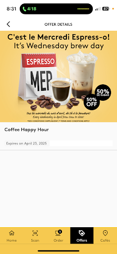 Read moreI saw this location advertising their smoothies on the front window and I thought hey why not try out a smoothie from second cup. So I pulled up in the parking lot, parked my car and walked in. As soon as I walked in, I notice a lady in a second cup uniform just standing there fiddling with her cell phone. Anyway, I didn't really think much of it because I still needed more time to decided on what I was getting exactly. As I was decided I noticed from my peripheral vision another lady that appeared from im not sure where but as soon as I turned my head to look at the other lady, she pulled out her phone and started to fiddle with her phone too. At that point, I knew what I wanted to get on the menu so I just stood there until their attention gravitated towards me but that didn't happen. Anyway, 15-20 seconds later I took off and grabbed a ice cap from tim hortans with absolutely no complications.