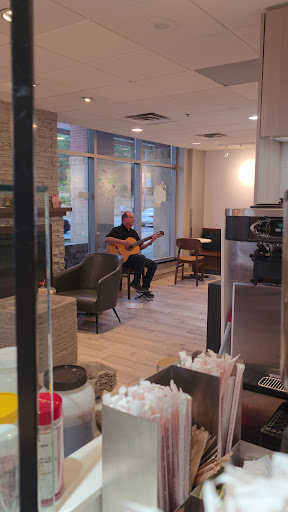 I could not believe it so I went to the barista wondering so he suggested me to go to a public washroom that is nearby!!! I asked to speak to the manager as I felt this is inappropriate, only to find him saying it is the young lady cleaning up the washroom. I returned back to the lady to speak to her since my drinks were not ready yet, I started to explicitly express how bad I felt towards that attitude so she said give me couple minutes to finish cleaning up then you can use it. I was able to use the washroom eventually but felt bad towards the attitude.