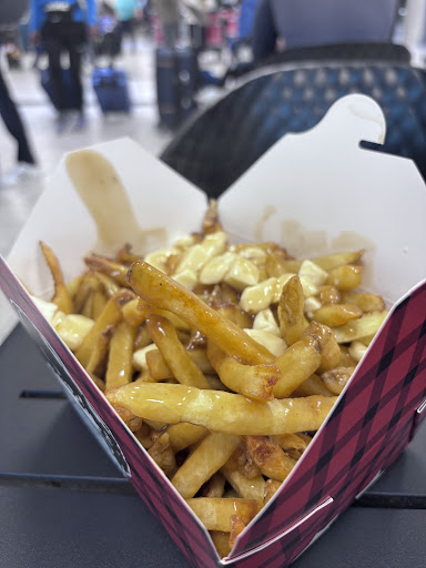 Read moreThe one good perk is that the location is tucked away in a quiet area of Terminal 3 - there's seating available including picnic tables for larger groups, and the washrooms are conveniently located adjacent. There is a door to outside but there is no outdoor patio space/seating, as the door sign says. We tried the Veggie Delight poutine and the Butter Chicken poutine - unfortunately both were disappointing. The veggie poutine was doused in condiments and had a bit of pureed avocado, while 1/2 the container was filled with (salty) gravy so all the fries were drenched and soggy from the get go. There was also cold cheese chunks in the mix. The butter chicken was a bit better but still over saturated with poutine gravy - which I suppose could be a preference for some people. We found it too heavy to finish eating and ended up tossing half of our poutines. YYZ doesn't really have dining options at this terminal so seating wise this is one of the better ones if you can stomach the...