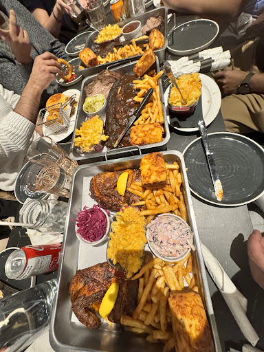 Read moreMade a first time visit here with three friends. We ordered the platter for four. When the server brought our food to our table, she first brought one platter. I asked the server where one of the menu items was and the server said she was bringing a second platter. The first platter had the smoked tandoori half chicken, the brisket, the thai mac & cheese, kettle chips, dill pickle fries, coleslaw, red cabbage and two corn bread. The second platter had the rack of bbq beef ribs, buttermilk fried chicken mac & cheese, dill pickle fries, kettle chips, pickles, bbq sauce and two corn bread. What a feast! Everything on both platters tasted great. The brisket was melt in your mouth. The beef ribs were delicious. Every item on both platters tasted great. The bbq sauce was also smoked. I ordered the smoked cherry cola. I've never had smoked cherry cola until now. It come in a bottle that you pour yourself. The smoke in the bottle was nice to see. The smoked cherry cola was perfect while enjoying the bbq feast. All three of us were full and we packed the food in take home containers. We ended the meal with great tea and the mango pie. We made sure we saved room for the mango pie. The pie was a perfect way to end the feast. Both our servers were very friendly and brought us anything we needed during our feast. We met the owner Samir. Thank you Samir for serving excellent tasting halal bbq in Mississauga. If you enjoy bbq meat, please make a visit here. I'll be back...