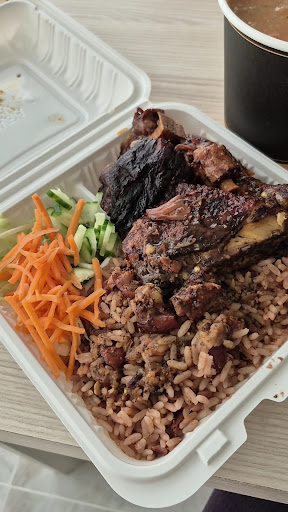 Food: I always been wanting to check out this place and finally did on a monday afternoon. I got the small jerk chicken meal and a large oxtail soup. It was $24.58 included tax. The jerk chicken meal was good portion, it has two pieces of chicken and one drumstick. Two tiny piece of oxtail. Salad is cucumber lettuce and carrot. I chose the rice which it was really favorful, large portion and not too soft or hard. The chicken has good texture, however, it could use more sauce either on it or on the side. The salad didn't came with dressing either which I saw some other reviews had. Now let's talk about the soup! The red peas oxtail soup was delicious! I got the large size since almost every review was saying how good it is. It has one large and one tiny piece of oxtail, a lot of potato/carrot, few pieces of dough(not sure what it is, tasted like gnocchi) in it. It has some spice in it, for a person that can't really take spicy, I have to stop every other 6 bites to let the spicy pass, but it was good spicy. Really wish for two medium oxtail pieces though, as it is hard to share with my boyfriend with a large and a tiny piece.