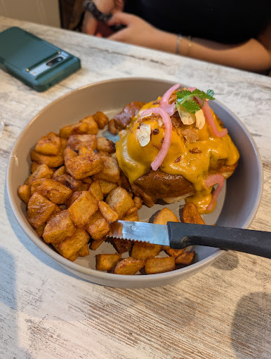 Read moreReally wanted to like this place but they were just too unorganized. They had a long wait but no list. Depending on who you spoke to, you might get forgotten or seated before tables waiting longer than you. It was cold in restaurant, they didn't adjust for weather or a set temperature that made sense indoors. The water cups were wet all over and sus. Couldn't tell if they were clean or dirty. Others got a water jug, we didn't. Had to wipe down my chair of food before I sat, then came to check the chair next to me and something had spilled and dried on it. Need a better process for cleaning and turning over tables. Understaffed, everyone was doing everything so it takes a while before you can place your order and too long before the food comes out. Your waiter is picking up phones, clearing tables on the opposite end of the restaurant and talking to new guests. They're really nice but just too busy. The food was good, except I've never been to a brunch place where your only coffee option is regular brewed coffee. They have Chai, but if you're looking for a latte or a cappuccino with your brunch, look elsewhere. It's also more expensive than other brunch places, particularly for what you get. I ordered the French toast which should come with a side of fruit and syrup. The side of fruit was less than half a strawberry (a few very thin slices) and a tenth of an orange. No syrup. I paid $6 to add 3 strips of bacon. I don't think people mind paying more if they're getting what's advertised, but this was disappointing. The potatoes were great, same with the bacon and eggs. The sausage was weird, didn't seem "meaty". Overall the meal was unsatisfying as a brunch, which would have made up for the cold, hectic atmosphere if menu execution and coffee were better. Won't be back unless I'm in the area and there is no wait. Wouldn't be worth the wait. And even then, my choices of what to to order would definitely be limited. Definitely wouldn't recommend if you don't like south Asian spices, as you'd not have many options because too many of their dishes had unswappable spicy twists. If that's your preferred palette you should definitely give this...