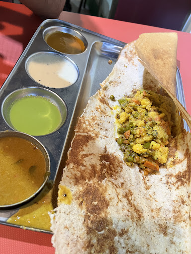 Read moreFirst of all, id like to point out that I am not indian and this was my second time ever eating southern food. Upon entering i noticed that the restaurant was busy and this was around 9:30PM, an hour away from closing time. This was a very great indication regarding both the food and service. As I took a seat, I was immediately given a menu and a cold glass of water. I asked the waitress for the most popular Appetizer and Dosa on the menu. She recommended that I ordered the Dahi Vada, which are 2 fried lentil donuts served with sweet spiced yogurt with garnishes and the Chilly Garlic masala dosa, which comes with a special homemade spicy chutney coated rice & lentil crepe, stuffed with potato masala. Both dishes were presentable and very delicious. They also came one after the other, so the waiting period for food was short.
