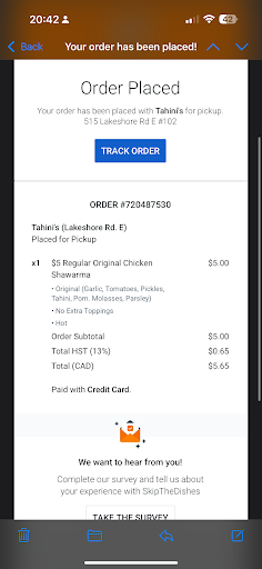 I have never given a restaurant a bad review , no matter how bad the service was as long as they’ve tried their best to resolve the issue. However, that was not the case today. I scheduled an order at 5:30pm on skipthedishes to be picked up by 7:30pm. I went in at 7:30pm, showed one of the employee the order number and confirmation, he simply told me to wait a bit. I waited for about 10 minutes and went to kindly ask to check if my order was ready or not, they told me they ran out of chicken , and to wait another 10 minutes, I waited again. When I saw everyone that ordered on skipthedishes gotten their order, I asked again. The employee said, they couldn’t find my order , or my name, although I provided them with the order number, confirmation email , plus payment information. They didn’t even tried helping me to resolve the issue, but simply told me to call skipthedishes MYSELF to resolve the problem. They literally threw their responsibility to me and didn’t even try calling or contacting skipthedishes , but rather for me to call myself. This is ridiculous, they literally had me waited for 30 minutes just to say they didn’t get my order in the system. I held my composure, didn’t want to make a scene at the already busy restaurant. But I hope the management can educate their employees when it comes to resolving problems, instead of just letting the customer resolve...