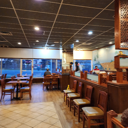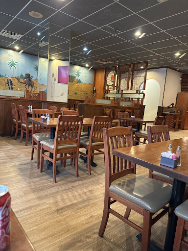 To start, I would say the restaurant is housed in a pretty run down building... it clearly is old and the parking lot looks like something out of a 'wrong side of the tracks' feel. The inside of the restaurant is ok... aged and worn but fairly clean. The interesting thing about it is the wooden designs all over the place that reminds you of the ceramic mosaics I saw in Middle East. It also has a large painted mural of what would be a stereotypical desert scene with men riding camels.