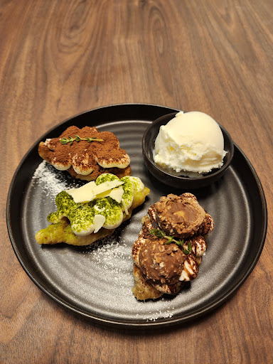 We started with the Ice Cream Mini Croffle Set. The three flavours we chose were hazelnut chocolate, matcha white chocolate, and tiramisu. Each bite was great, and it came with a side of vanilla ice cream.
