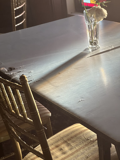 The state of the tables was filthy I payed $75 per person yet look at the table beside me at least put on a table cloth, and get rid of the broom and stuff behind the door in the room they put us đ horrendous