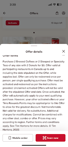 Ā Ā Ā Read moreThe quality of the service at this Tim Hortons deserves a -10. Specifically the night time shift. This location use to be great but youāre better off taking your drink orders elsewhere. I was at this location drive thru at 12:20am July 17. I ordered two mango quenchers thru drive thru. I wanted one LESS SWEET. I had no problem paying the full price for both. However I just wanted one LESS sweet (so instead of a full pump I requested she just put half a pump of mango syrup)I thought the lady misunderstood but as the conversation progressed, the lady was just being complicated. I reiterated what I wanted for my order because I was under the impression she didnāt understand how I wanted my order. Yet she told me for half a pump it would extra cost. Even though I didnāt want a extra pump of syrup. I tried to explain again but she responded with a nasty attitude that she understood. So I asked why am I being charged for something Iām not asking extra for.