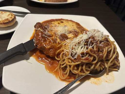 We ordered 3 appetizers. We asked for 2 to be served first, but the garlic bread with cheese we would like with our dinners as my daughter likes to dip it into her meal like the previous 2 times she came with her friend. We got our 2 appetizers, bruschetta & mozzarella sticks. Bruschetta was good. Couple of the mozzarella sticks had nothing inside of them and were okay. It took a few minutes before we all got our dinners, as they came out quite slowly and once all dinners were served, we are wondering about the garlic bread. We asked and were told it's coming. It appeared it was forgotten. When it did finally come they did it with no cheese. And then finally, by the time it did, the cheese was poorly and barely put on, and by then my daughter and the rest of us were done eating our meals. I had the spaghetti with meatballs. I could not eat the meatballs. They were tasteless. When asked at the end if everything was okay, while clearly it was not, I informed her about the tasteless meatballs that were sitting on a different plate and she advised she would let the kitchen know. Instead, we FINALLY just got a bill with nothing taken off. We did send the garlic bread back saying we no longer needed it.
