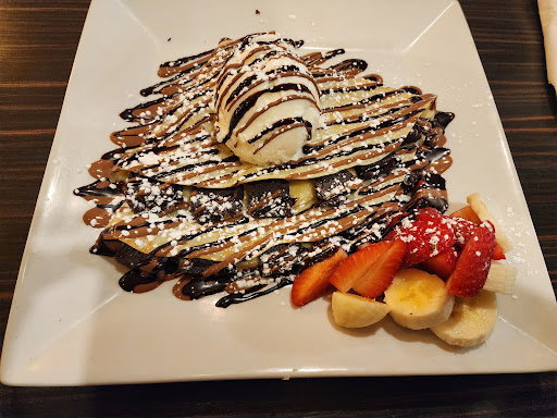 Ordered the Valentino waffle and brownie and fruits crepe. The plates were massive. The waffle was fresh and tasty and the strawberry ice cream was delicious. The crepe was also fresh, thin, with brownies in between each layer alongside fruits.