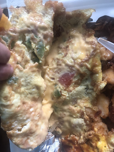 We ordered 2 omelettes for delivery. Delivery was quick. We get the food and I open my omelettes which I had added cheese. As you can see, it was not cheese, it was the processed cheese wizz stuff or singles sometimes use in burgers. I have never in my life seen an omelette used with cheese wiz/processed cheese. At least specify if you don't have any other cheese at hand. I cannot eat that kind of cheese due to stomach issues & I usually specify that when ordering a burger or nachos, but would never expect to be faced with such when ordering an omelette.