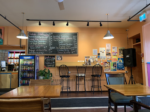 The food is amazing, they serve healthy local snacks as well , and if you just need a beer while sitting in the audience at a spoken word night, well he can make that happen too!!!