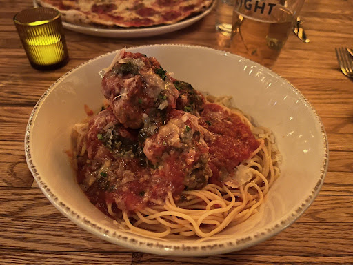 The menu is excellent, but there is a lack of non-alcoholic beverages. There were only two sweet cocktails in the main menu, which is not great for such a restaurant. We ordered risotto and pepperoni pizza, and both dishes were very tasty and lived up to our expectations.